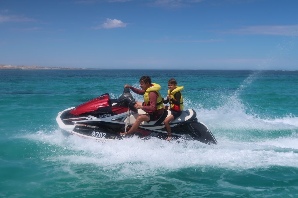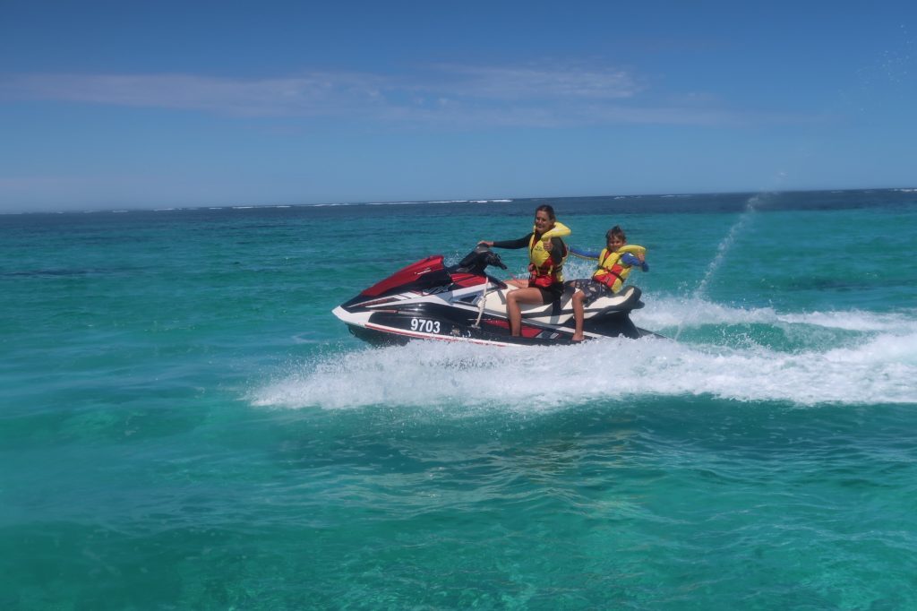 Eine neue Herausforderung. Die Jungs wollen einfach einmal Jetski fahren. Will ich das auch? Tja ich habe mich dazu entschieden. Schon bei der Einführung wurde es mir fast anders! Trotz Übersetzungshilfen von Michi graute mir sehr vor der Fahrt. Mit einem kleinen Transporter wurden wir mit einem weiteren Paar zum Hafen gefahren. Dort waren diese Dinger schon im Wasser und ready! Ich Aber gar nicht. Paolo hat mich motiviert und mir geholfen die Schnorchelsachen zu Verstauen und uns auf dieses Gefährt zu sitzen. Dann gings Los!
