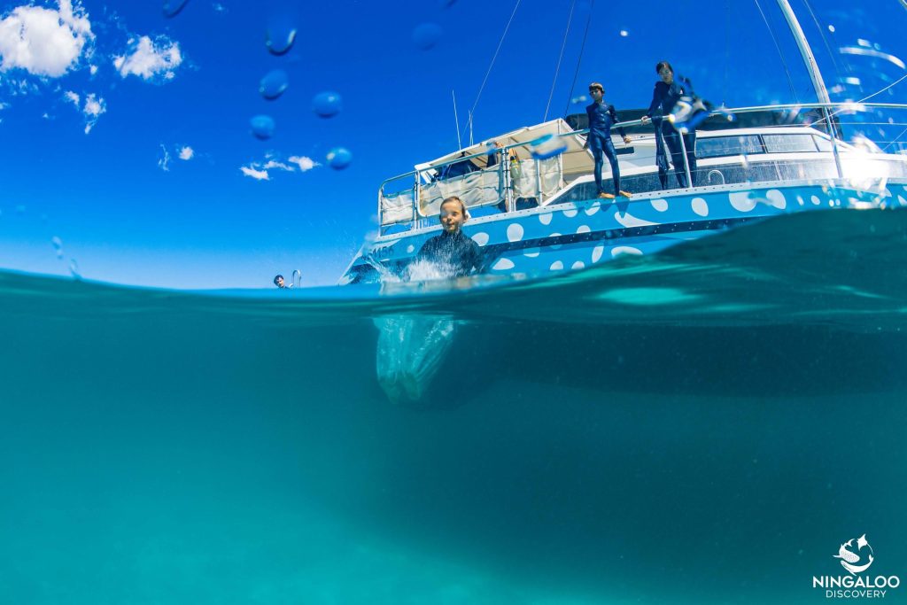 Heute machten wir hier in Exmouth wiedermal gebrauch vom touristischen Angebot. Wir mussten zeitig aus den Federn damit wir rechtzeitig um 07:45 an der Campinplatz Reception abholbereit waren. Prompt kam ein Bus und unsere Namen waren auf der Liste. Erwartungsvoll stiegen wir ein. Auf der Fahrt zum Bootshafen wurden wir mit viel Information über den Ort gefüttert. Die eingestreuten Fragen stellten Gian-Marco nicht auf die Probe, er hatte sich gut eingelesen.