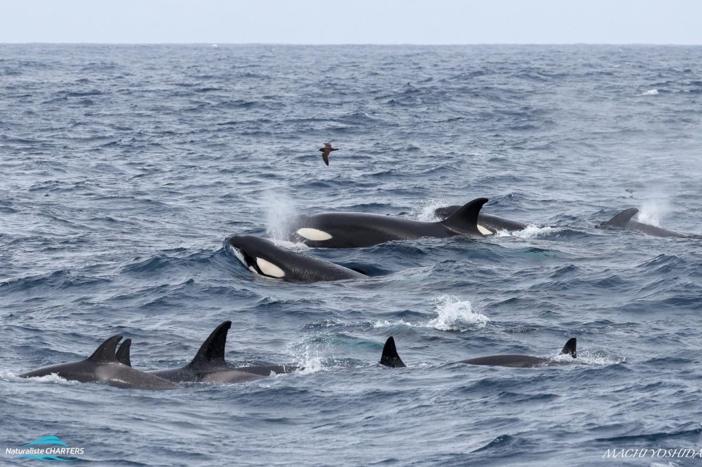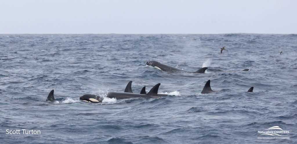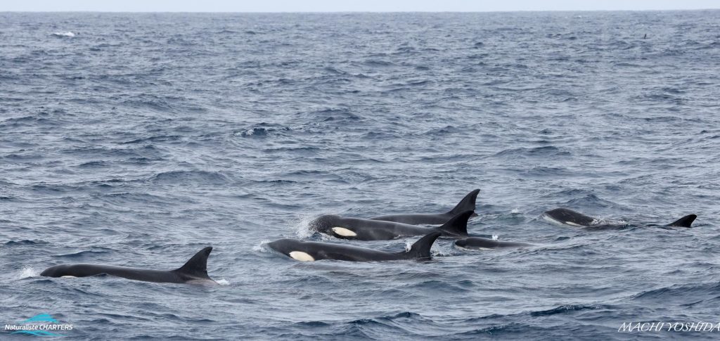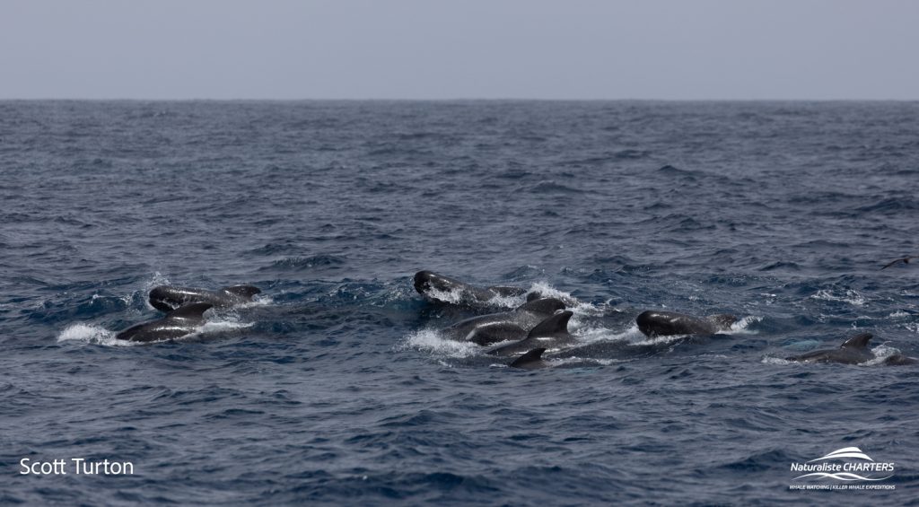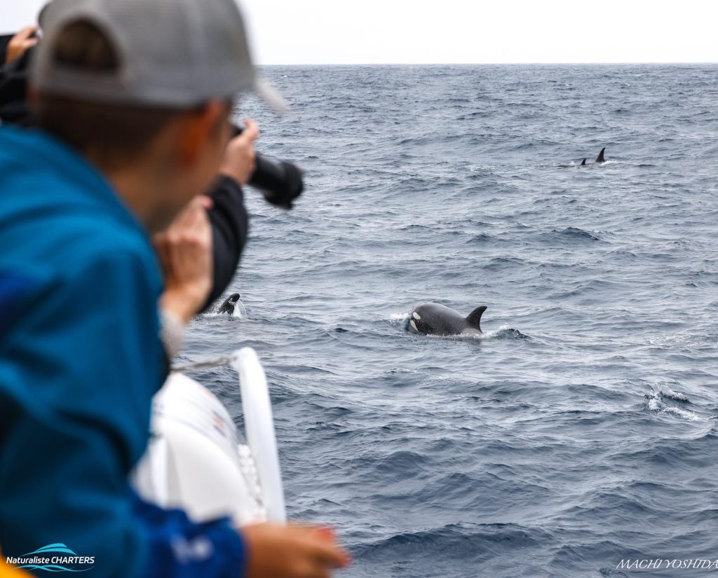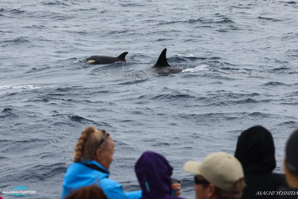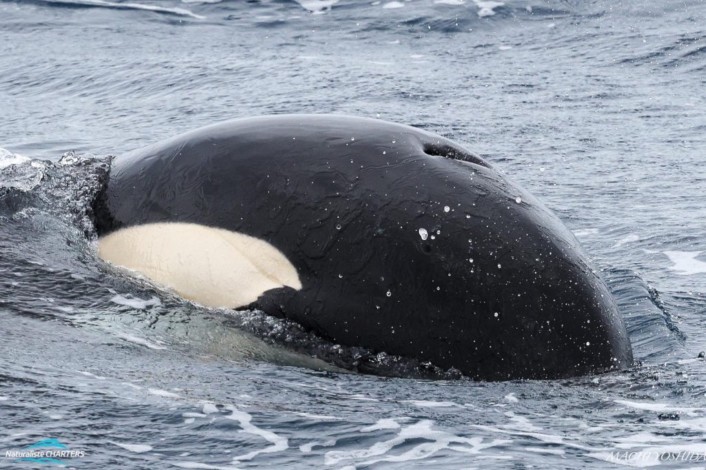 Wir waren den ganzen Tag auf dem Wasser und immer wieder tauchten die Orkas auf. Schwammen nebeneinander an uns vorbei, tauchten unter dem Boot hindurch oder liessen sich platschend auf den Rücken fallen. Dazwischen wurden wir mit Snacks verwöhnt was uns jedoch nicht vom Beobachten abhielt. Als der Käpten den Aufbruch signalisierte tauchen plötzlich eine grosse Gruppe Pilotwale auf.Pilotwale tauchten aus dem Nichts auf Wir durften diese auch noch beobachten bevor der Motor wieder laut wurde und wir wieder los Richtung Land aufbrachen. Dann Tauchten ca. 20 Delfine auf. Spielerisch begleiteten sie uns eine ganze Zeit lang.