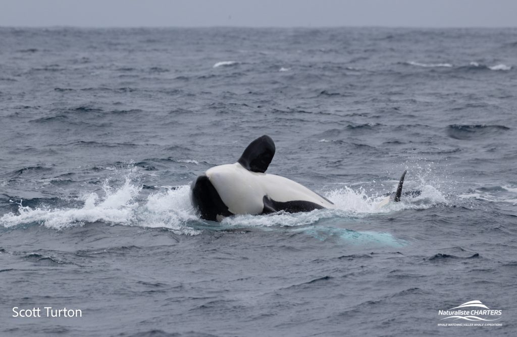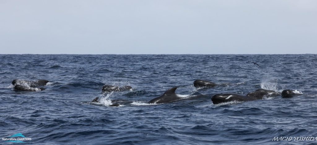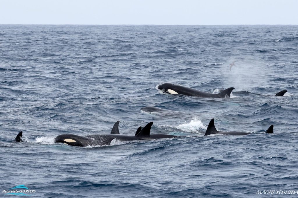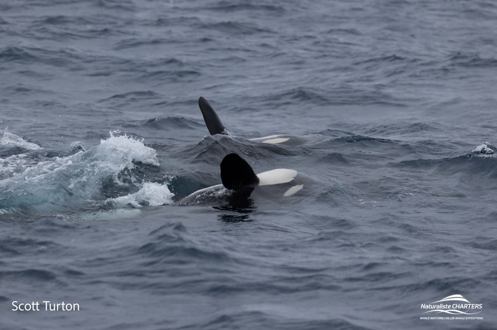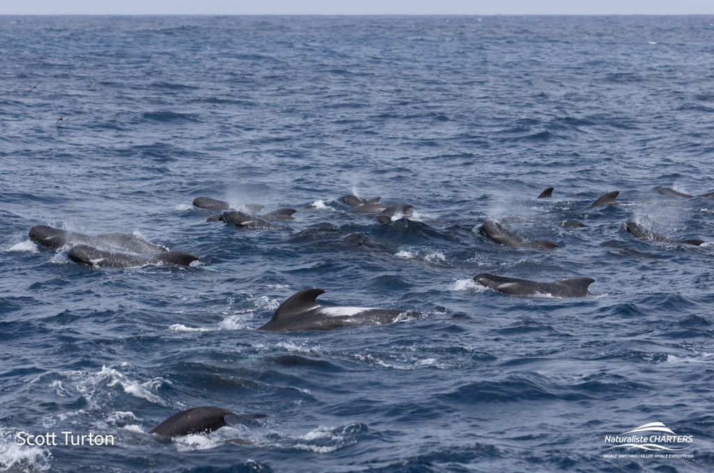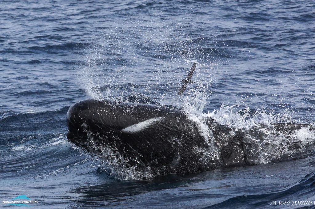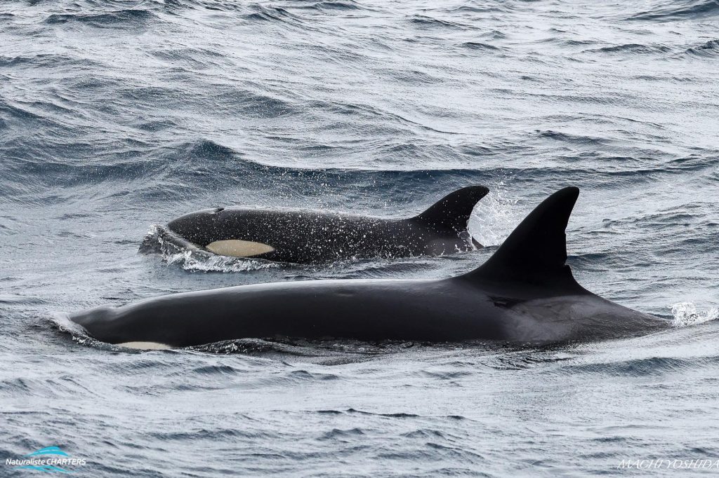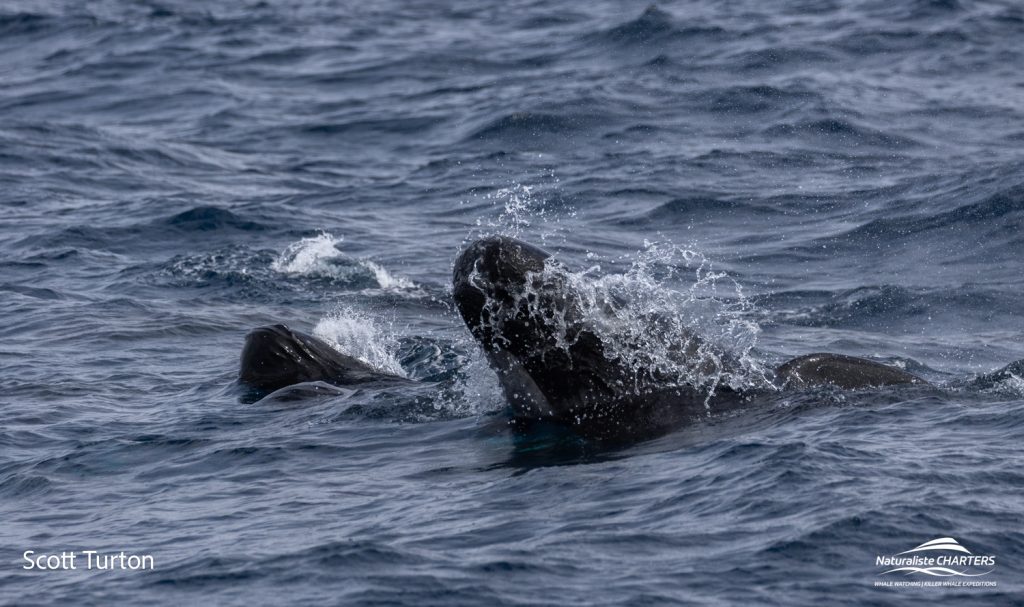 Wir waren den ganzen Tag auf dem Wasser und immer wieder tauchten die Orkas auf. Schwammen nebeneinander an uns vorbei, tauchten unter dem Boot hindurch oder liessen sich platschend auf den Rücken fallen. Dazwischen wurden wir mit Snacks verwöhnt was uns jedoch nicht vom Beobachten abhielt. Als der Käpten den Aufbruch signalisierte tauchen plötzlich eine grosse Gruppe Pilotwale auf.Pilotwale tauchten aus dem Nichts auf Wir durften diese auch noch beobachten bevor der Motor wieder laut wurde und wir wieder los Richtung Land aufbrachen. Dann Tauchten ca. 20 Delfine auf. Spielerisch begleiteten sie uns eine ganze Zeit lang.