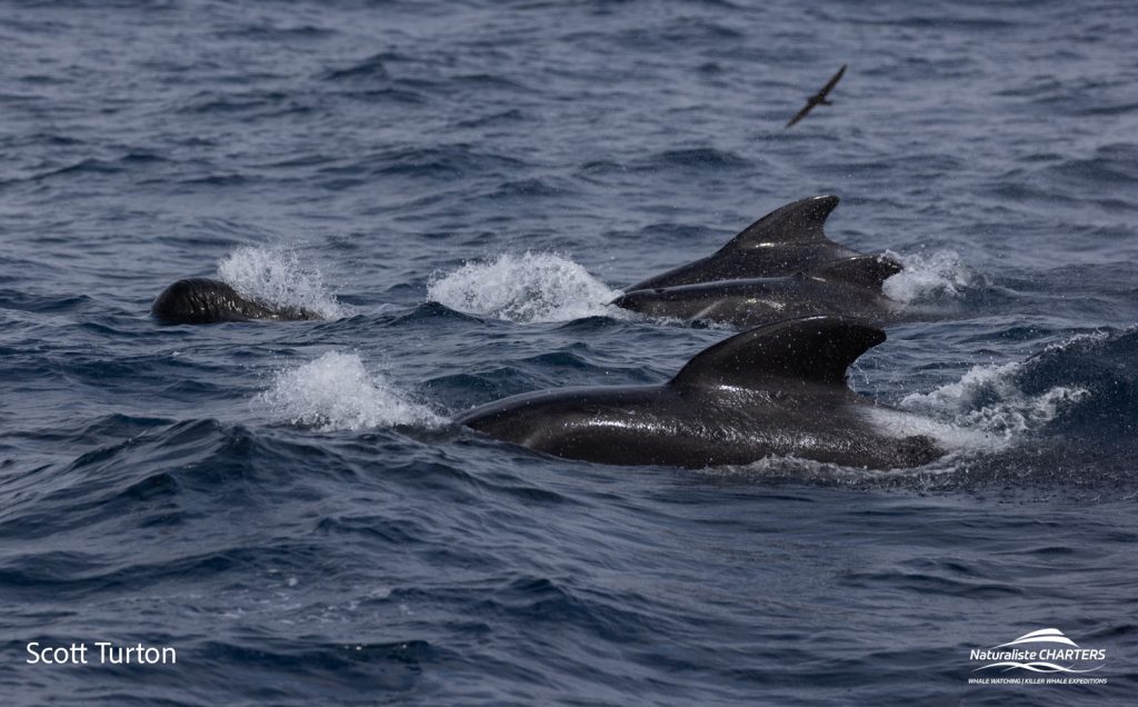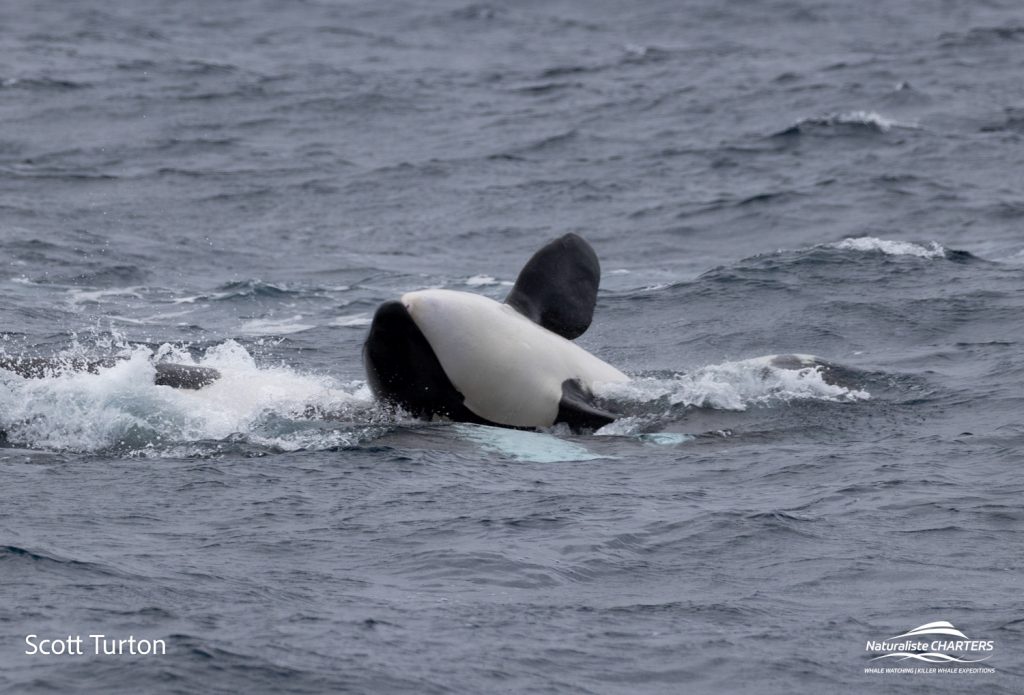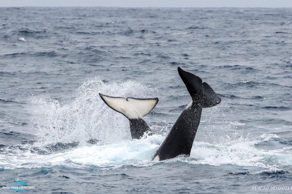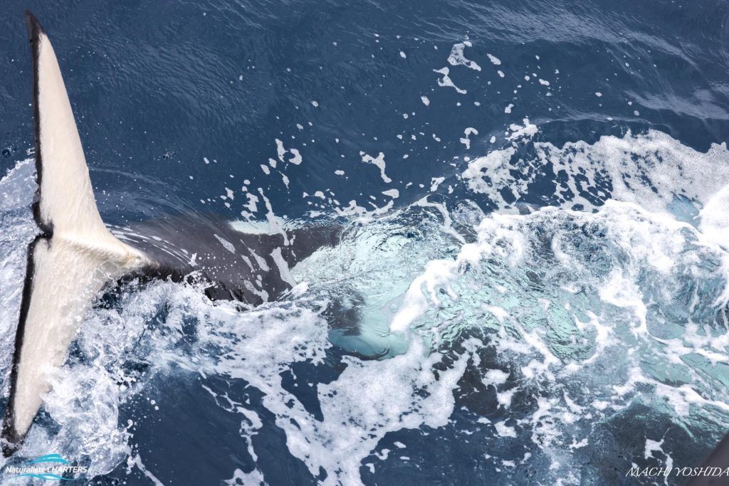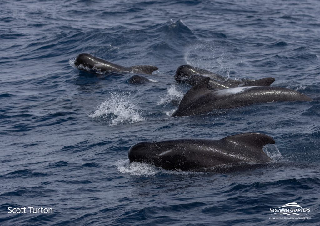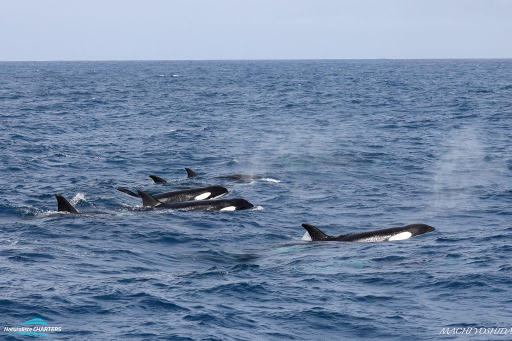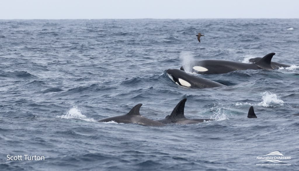 Wir waren den ganzen Tag auf dem Wasser und immer wieder tauchten die Orkas auf. Schwammen nebeneinander an uns vorbei, tauchten unter dem Boot hindurch oder liessen sich platschend auf den Rücken fallen. Dazwischen wurden wir mit Snacks verwöhnt was uns jedoch nicht vom Beobachten abhielt. Als der Käpten den Aufbruch signalisierte tauchen plötzlich eine grosse Gruppe Pilotwale auf.Pilotwale tauchten aus dem Nichts auf Wir durften diese auch noch beobachten bevor der Motor wieder laut wurde und wir wieder los Richtung Land aufbrachen. Dann Tauchten ca. 20 Delfine auf. Spielerisch begleiteten sie uns eine ganze Zeit lang.