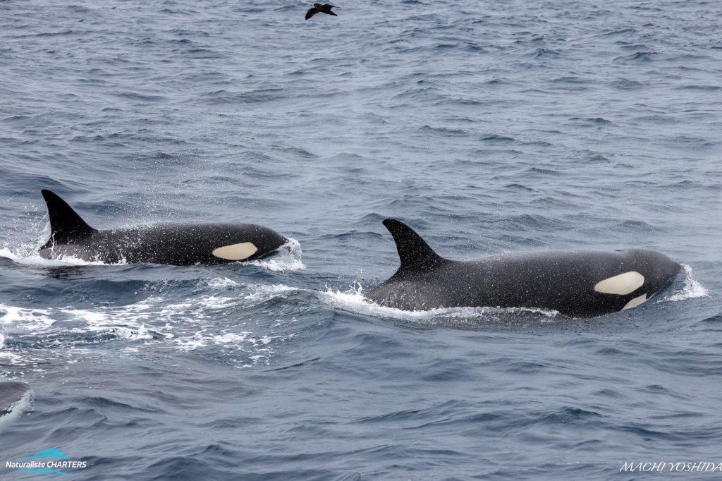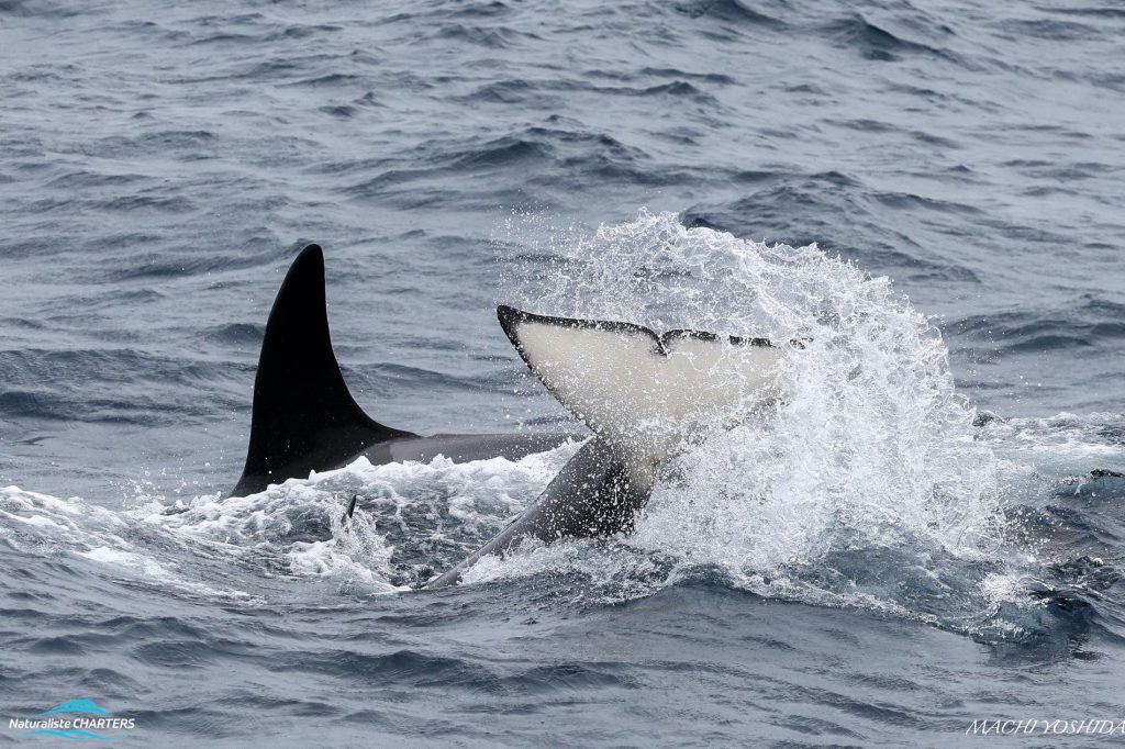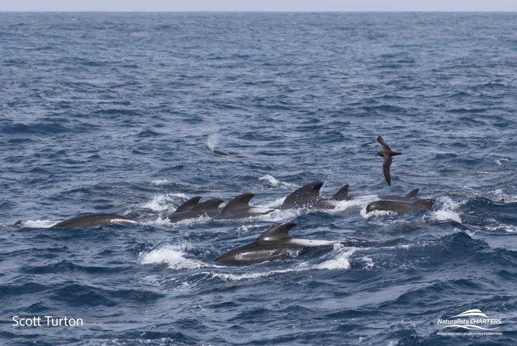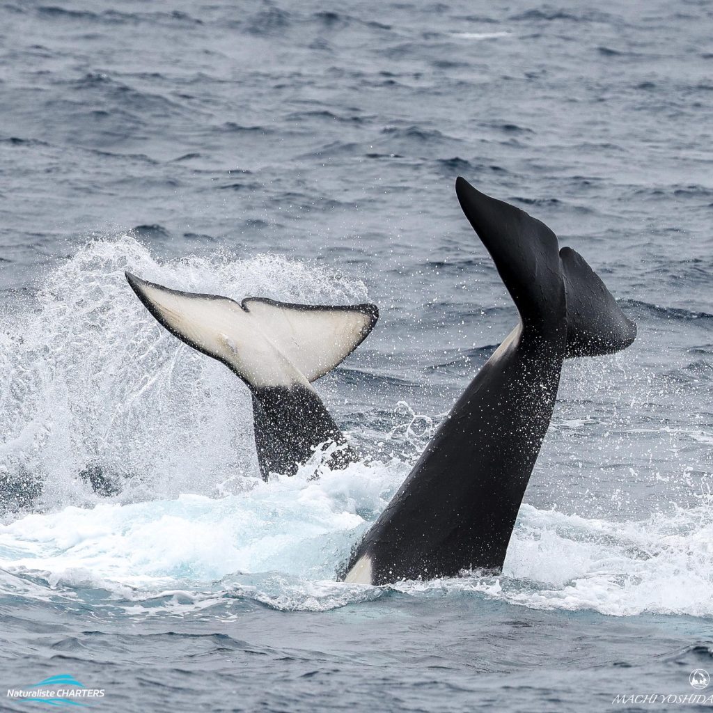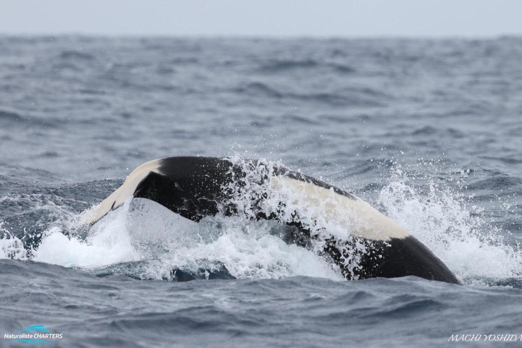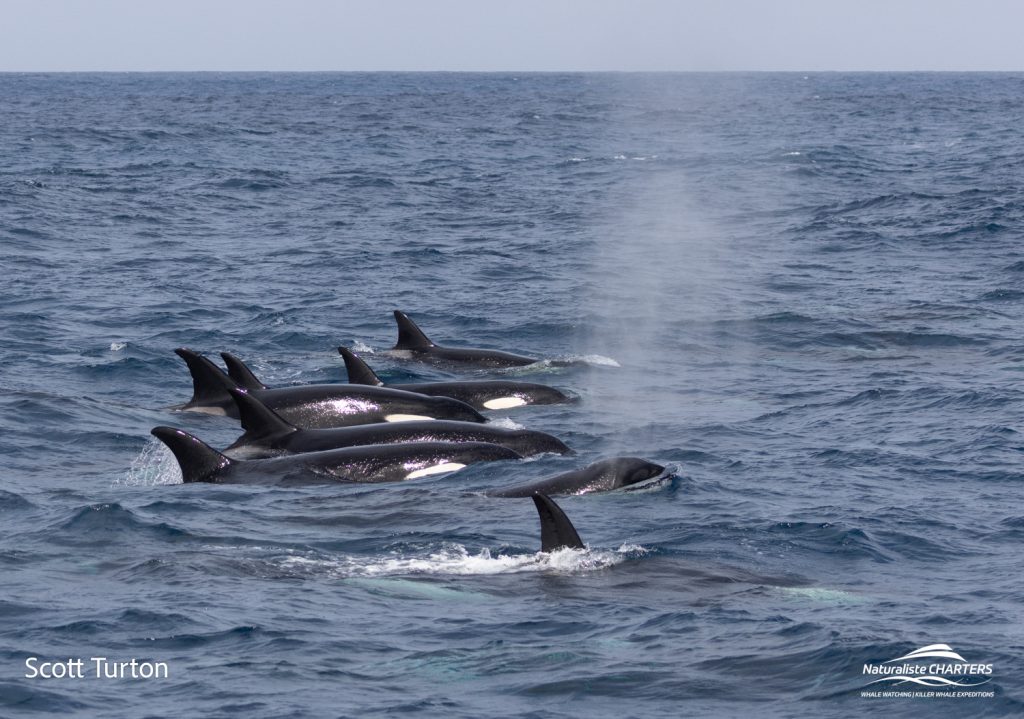 Wir waren den ganzen Tag auf dem Wasser und immer wieder tauchten die Orkas auf. Schwammen nebeneinander an uns vorbei, tauchten unter dem Boot hindurch oder liessen sich platschend auf den Rücken fallen. Dazwischen wurden wir mit Snacks verwöhnt was uns jedoch nicht vom Beobachten abhielt. Als der Käpten den Aufbruch signalisierte tauchen plötzlich eine grosse Gruppe Pilotwale auf.Pilotwale tauchten aus dem Nichts auf Wir durften diese auch noch beobachten bevor der Motor wieder laut wurde und wir wieder los Richtung Land aufbrachen. Dann Tauchten ca. 20 Delfine auf. Spielerisch begleiteten sie uns eine ganze Zeit lang.