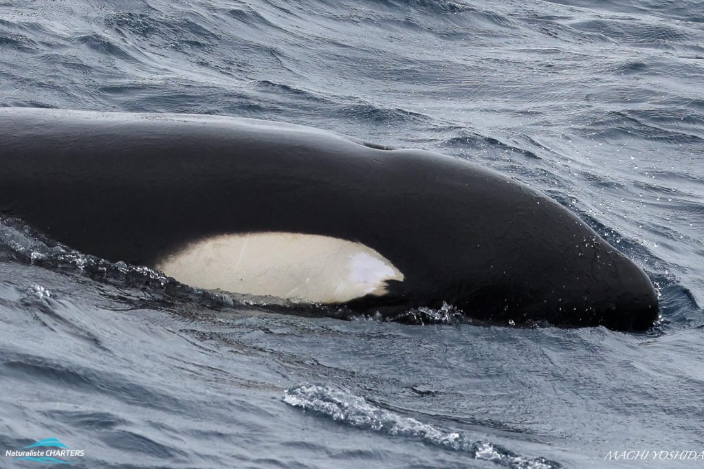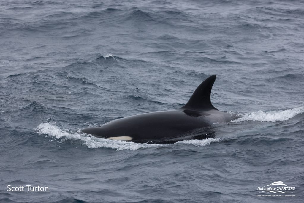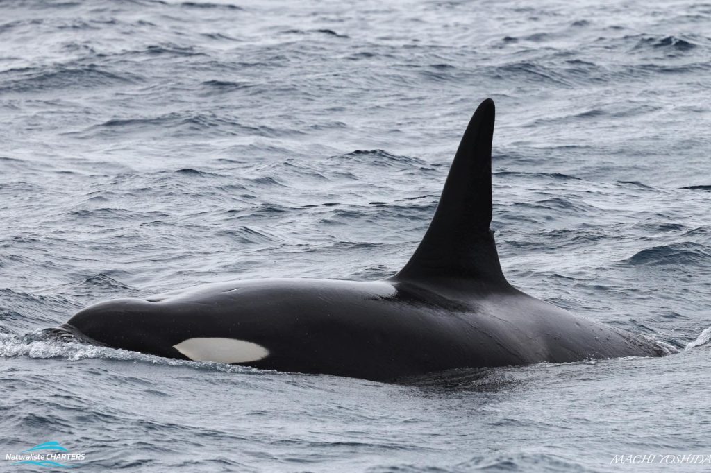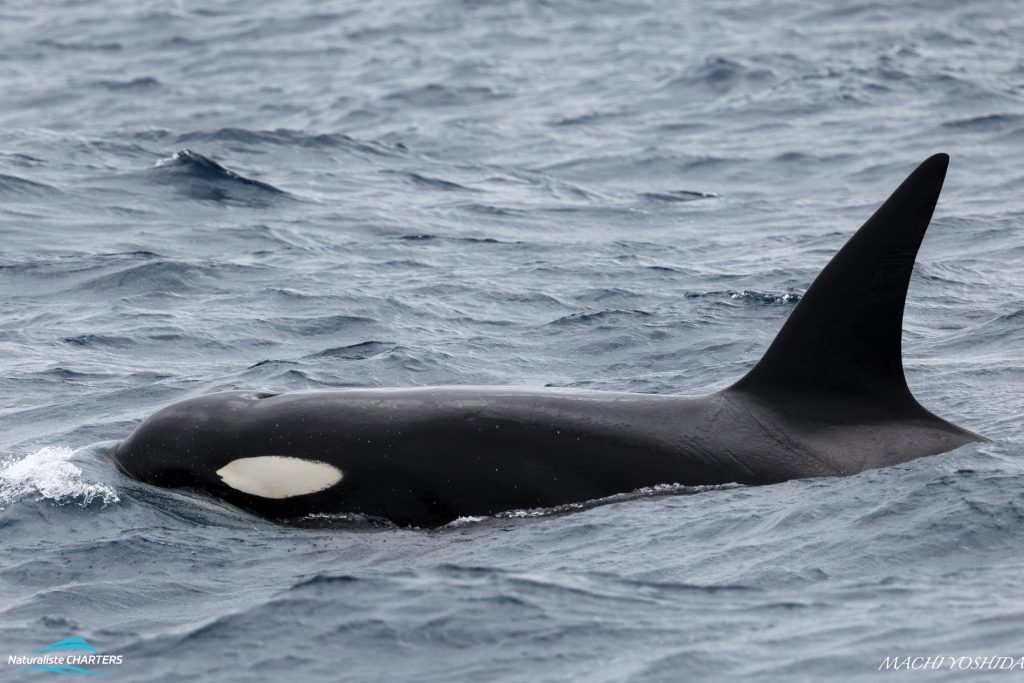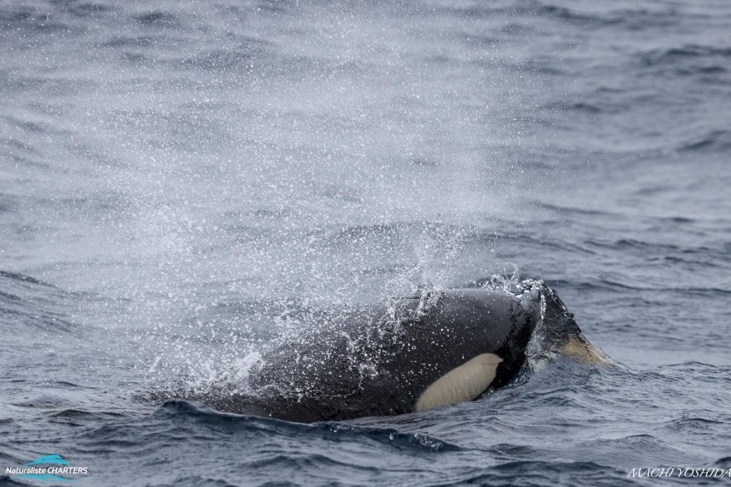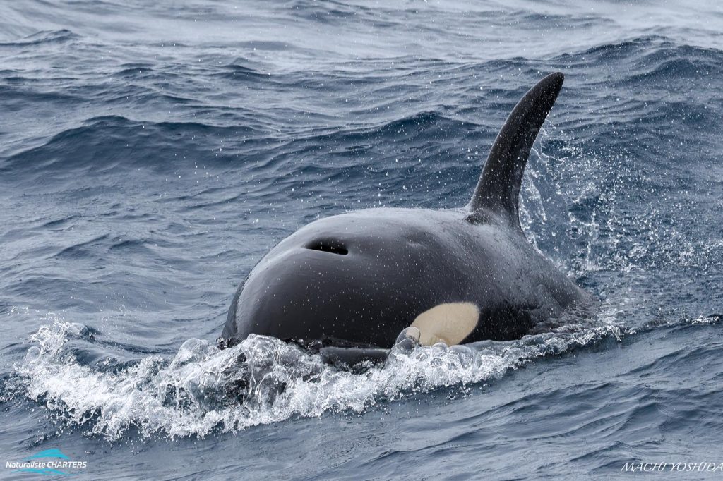 Dann wellten wir los. Riesige Wellen und das kleine Boot schaukelte hoch und runter. 1 1/2 Stunden später dann der erste Orka. Alle zückten ihre riesigen Kameras und knipsten darauf los.