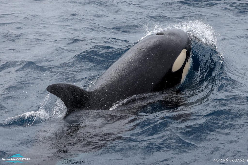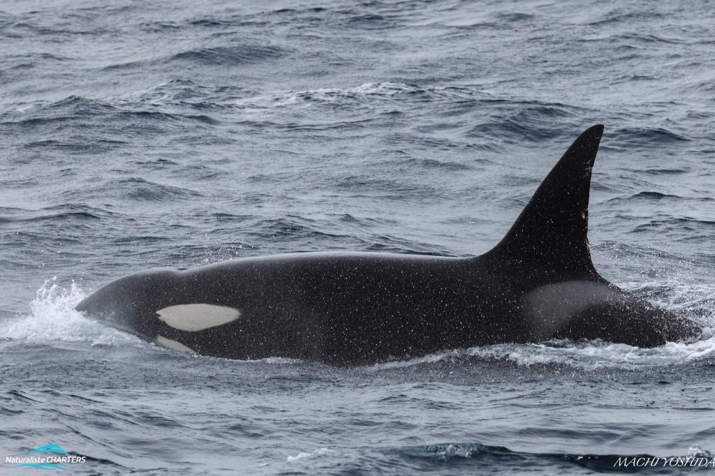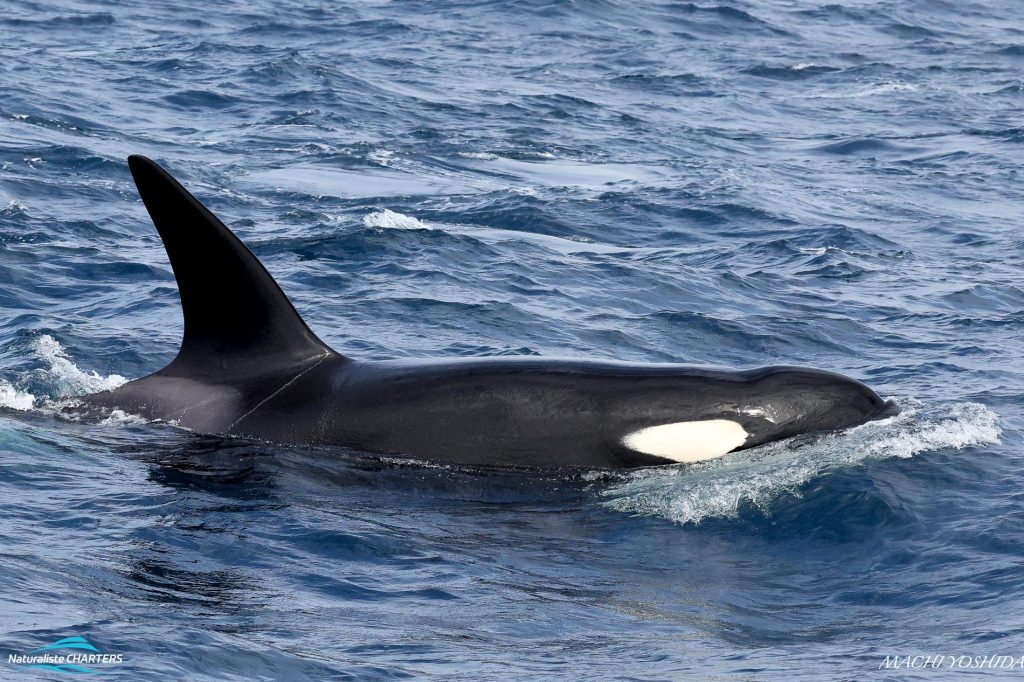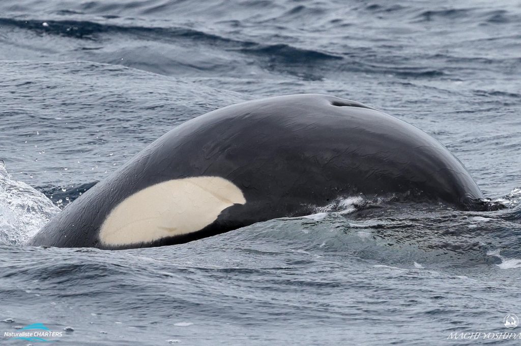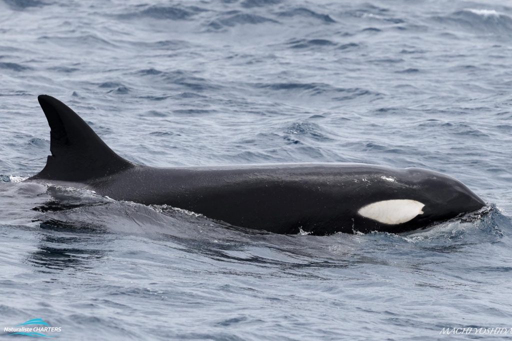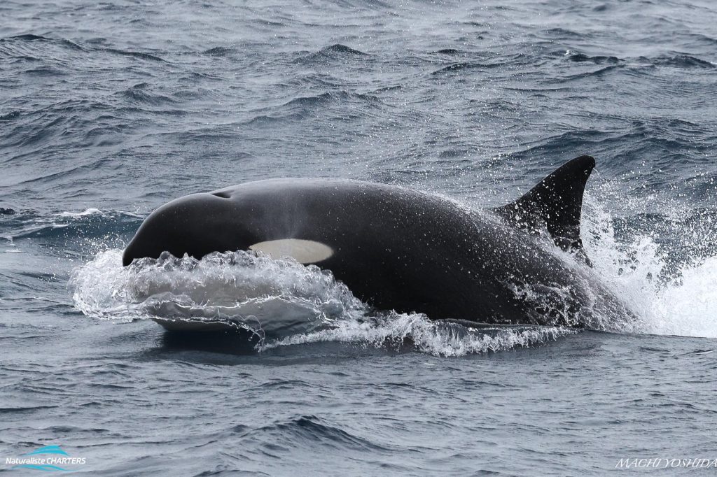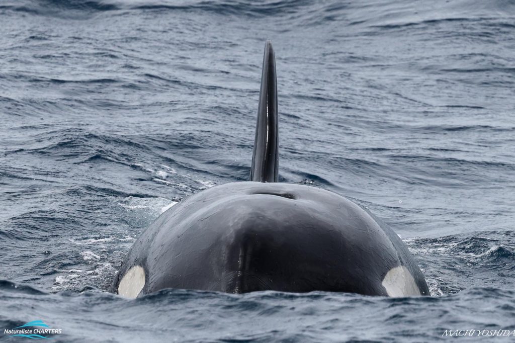 Dann wellten wir los. Riesige Wellen und das kleine Boot schaukelte hoch und runter. 1 1/2 Stunden später dann der erste Orka. Alle zückten ihre riesigen Kameras und knipsten darauf los.