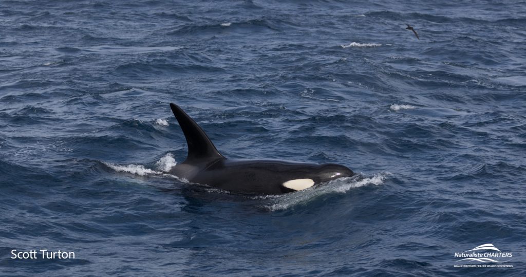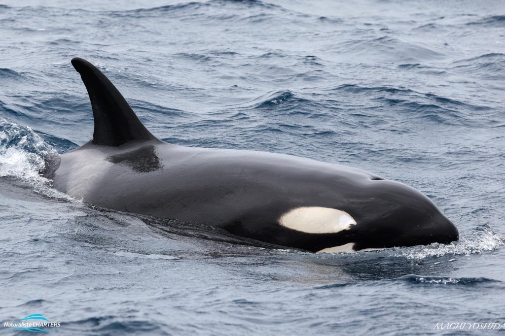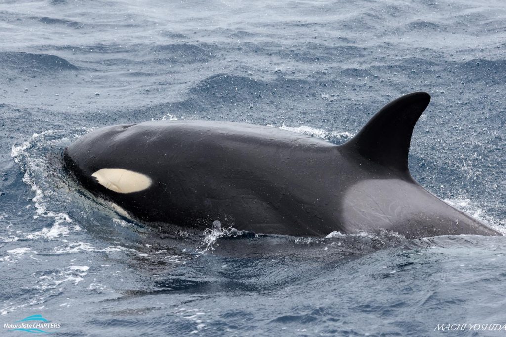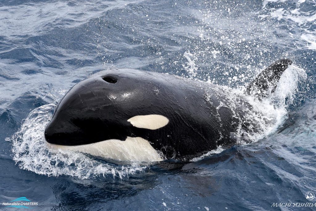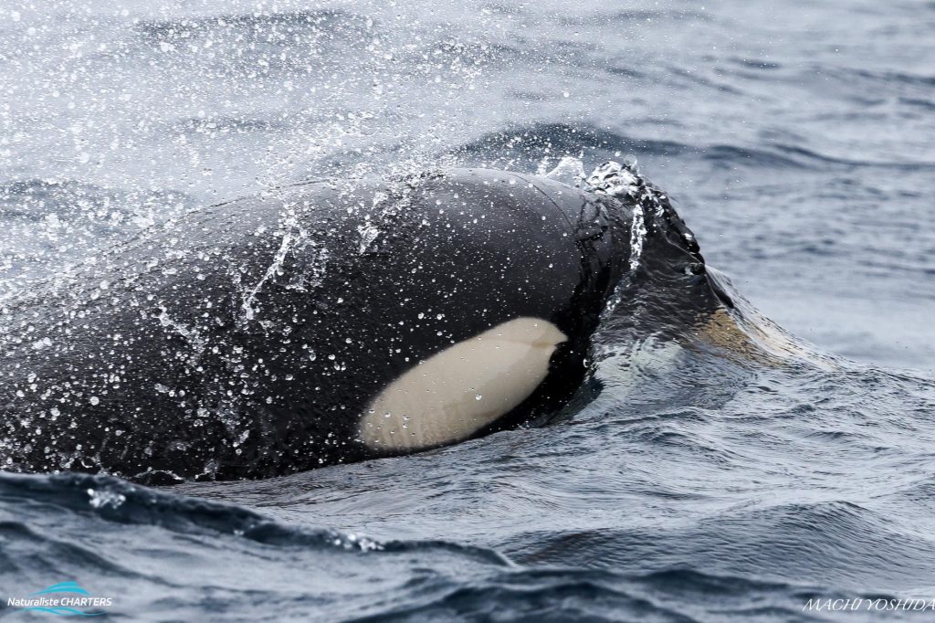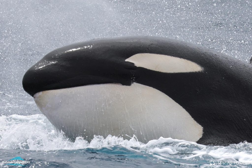 Dann wellten wir los. Riesige Wellen und das kleine Boot schaukelte hoch und runter. 1 1/2 Stunden später dann der erste Orka. Alle zückten ihre riesigen Kameras und knipsten darauf los.