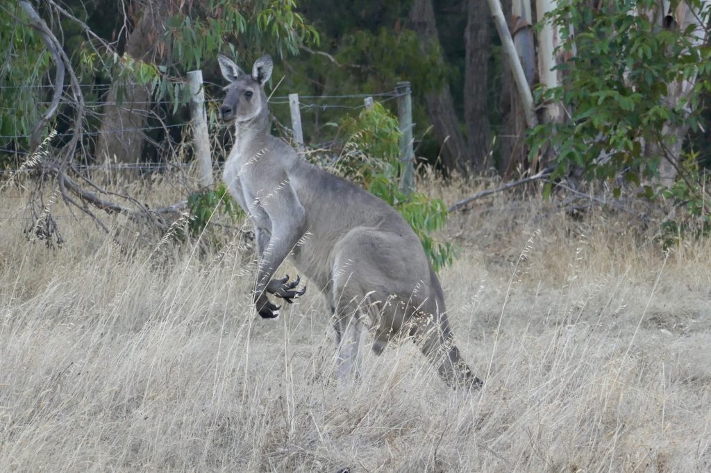 Nach dem Kühe füttern (die älteste ist 22 jährig) bemerkten wir die ersten Kängurus in der Nähe.