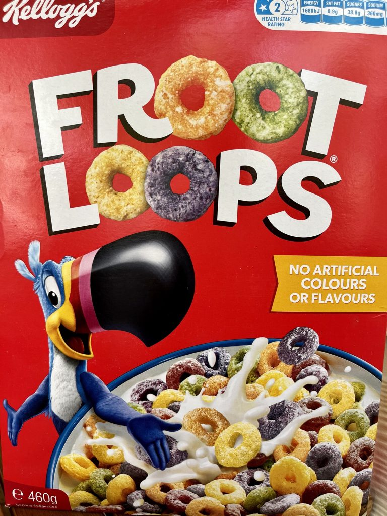 Ein Beispiel aus dieser Kategorie möchte ich der Leserschaft nicht vorenthalten. Im lokalen Supermarkt standen die Buben vor dem Gestell mit den Flöckli. Sie waren überaus angetan von einer Packung “Kelloggs Fruit Loops”. Die Verpackung versprach eine Vielzahl von farbigen Ringen, zudem war ein lustiger Tucan auf der Packung abgebildet.