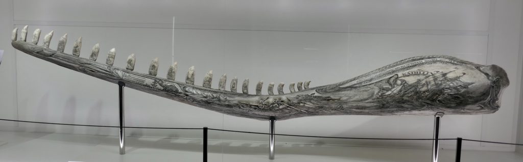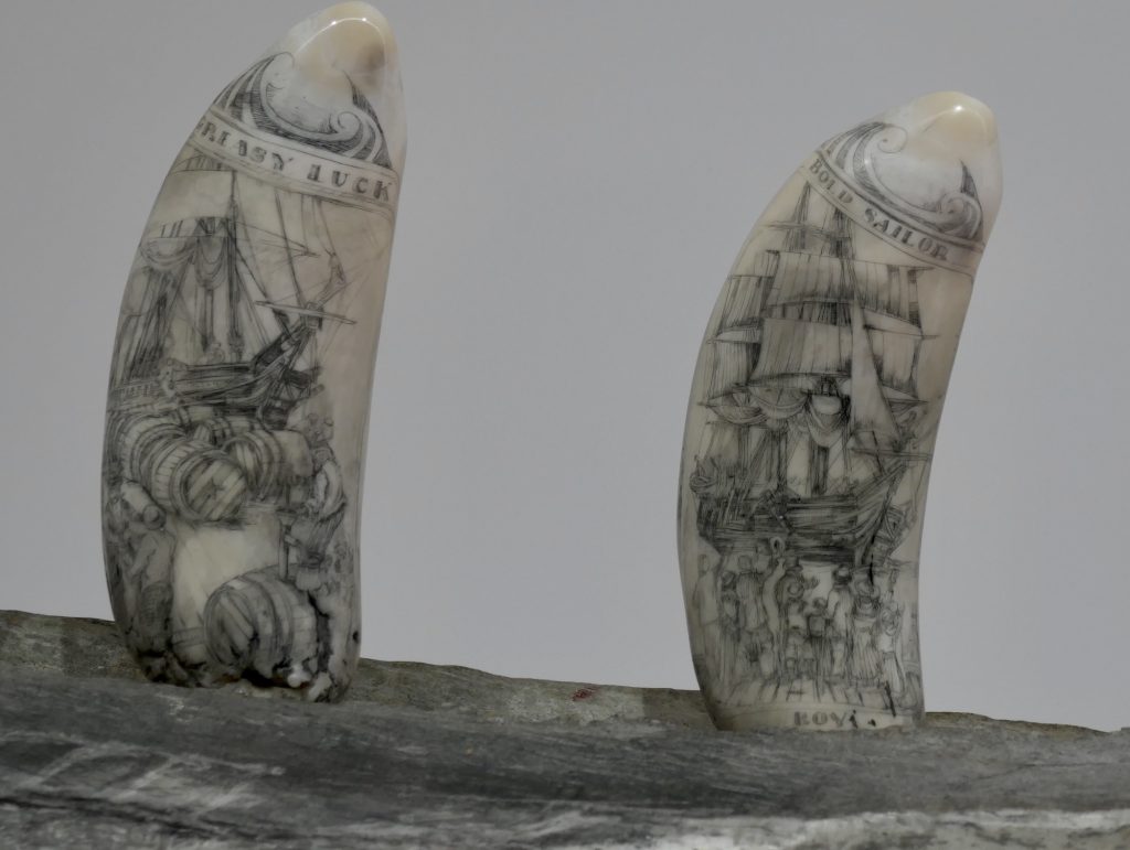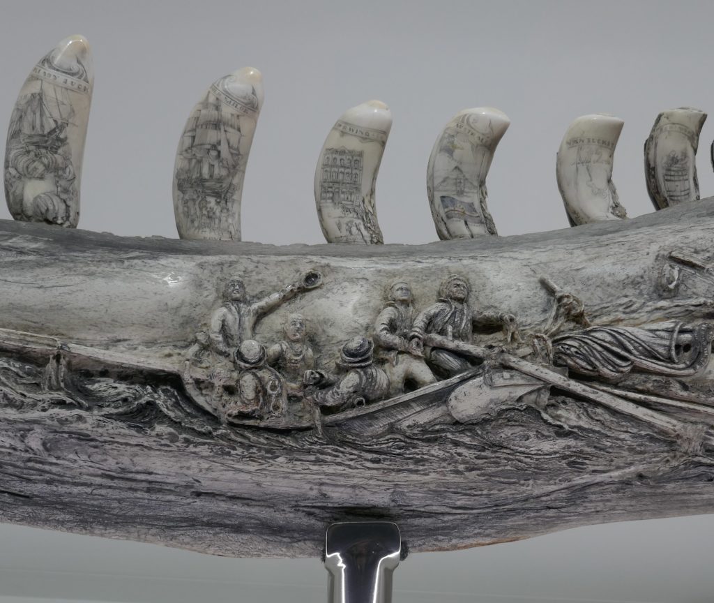 Kieferknochen eines Wals mit kunstvoller Schnitzerei.