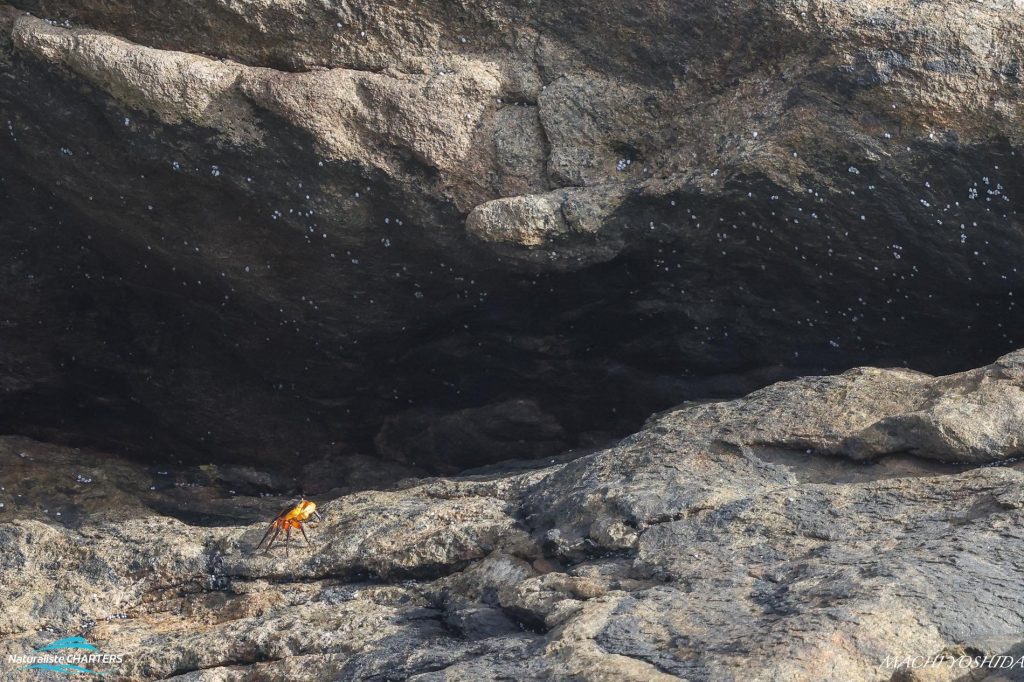 Wir setzten uns also beim Riss hin und es passierte nichts. Es passierte sogar ziemlich lange nichts. Irgendwann hatte dann offenbar eine Welle die nötige Grösse so das die Luft nicht mehr zum Meer hin entweichen konnte. Dann wird diese unvermittelt aus dem Riss gedrückt. Wir erschraken mächtig. Nicht nur beim ersten sondern auch beim wiederholten Mal – aber seht selber: